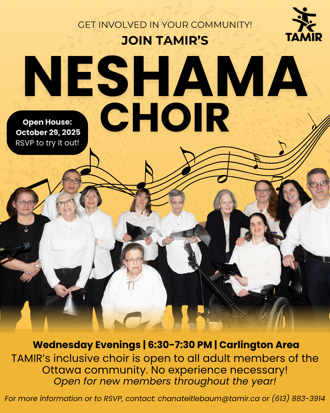 TAMIR’s Neshama Choir is an inclusive choir open to all adult members of the Ottawa community. Whether you have singing experience or simply love music, you are welcome to join.